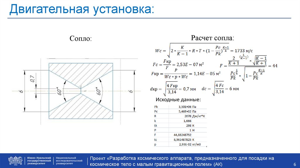 Двигательная установка:Проект «Разработка космического аппарата, предназначенного для посадки на