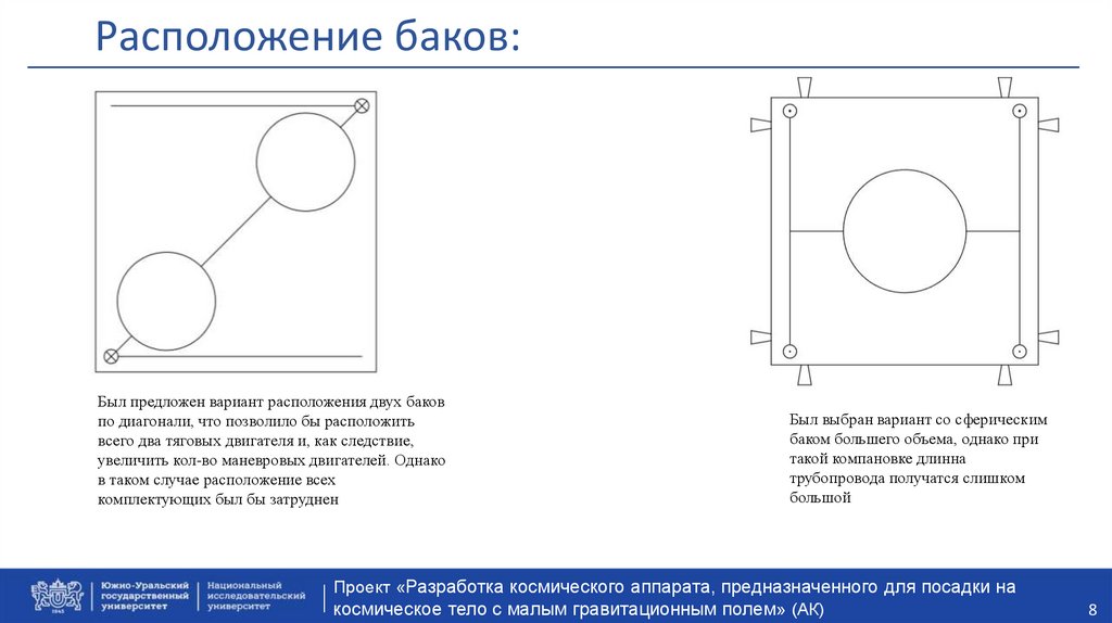 Расположение баков:Был предложен вариант расположения двух баков