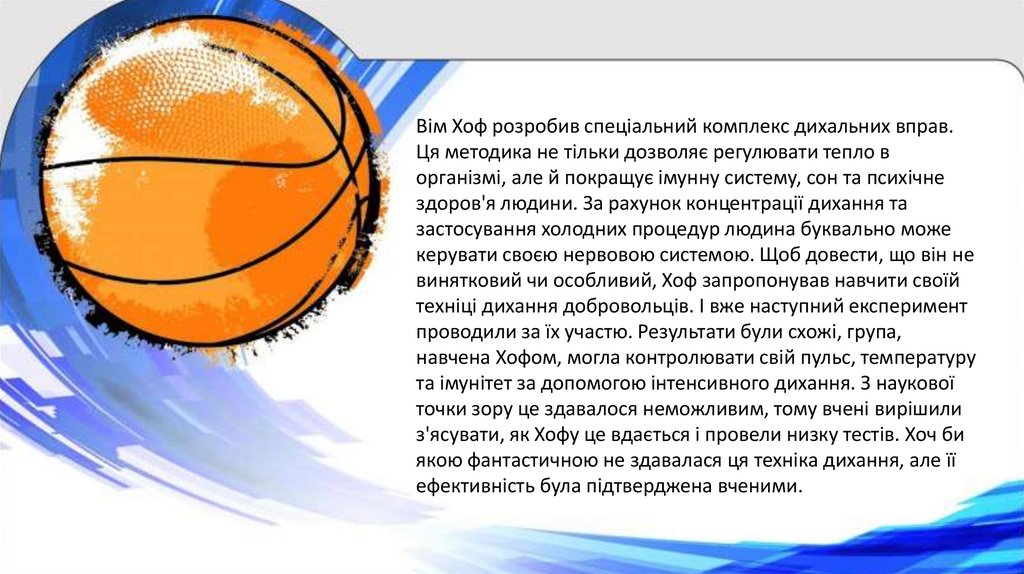 Вім Хоф розробив спеціальний комплекс дихальних вправ.Ця методика не тільки дозволяє регулювати тепло в