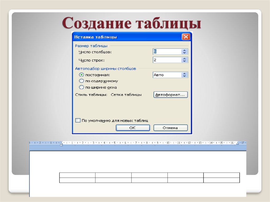 Создание таблицы
