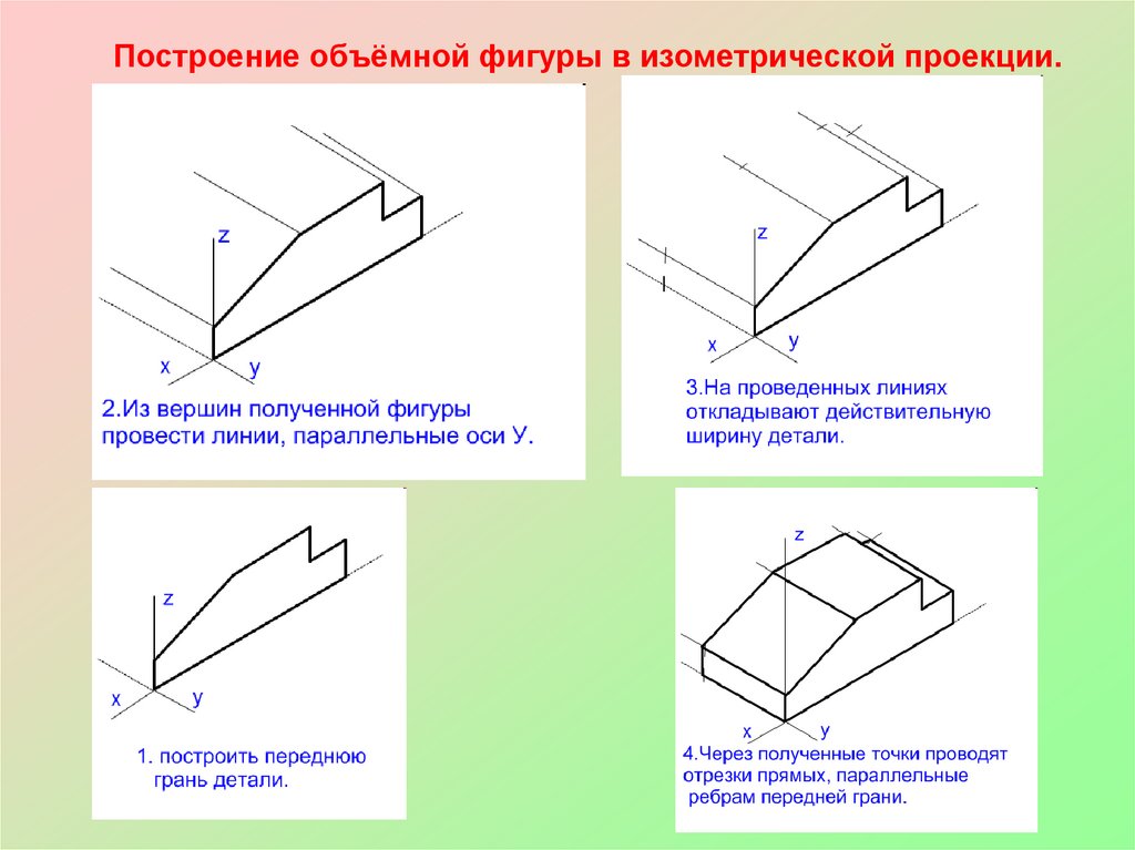Построение объёмной фигуры в изометрической проекции.13.
