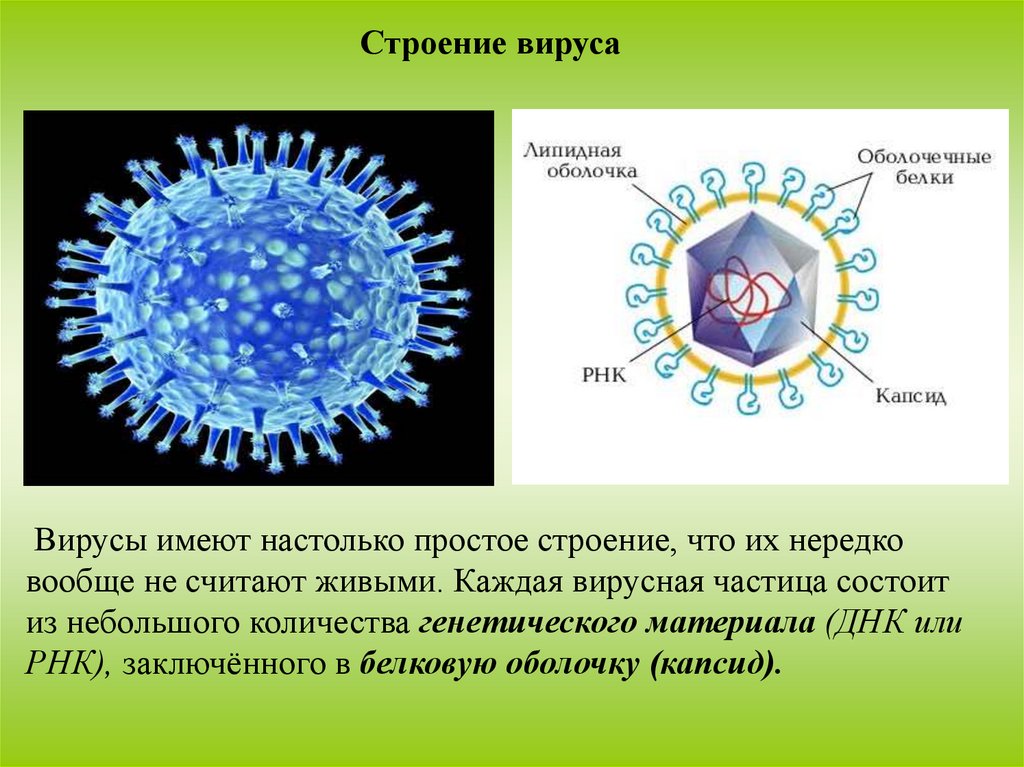Строение вирусаВирусы имеют настолько простое строение, что их нередко