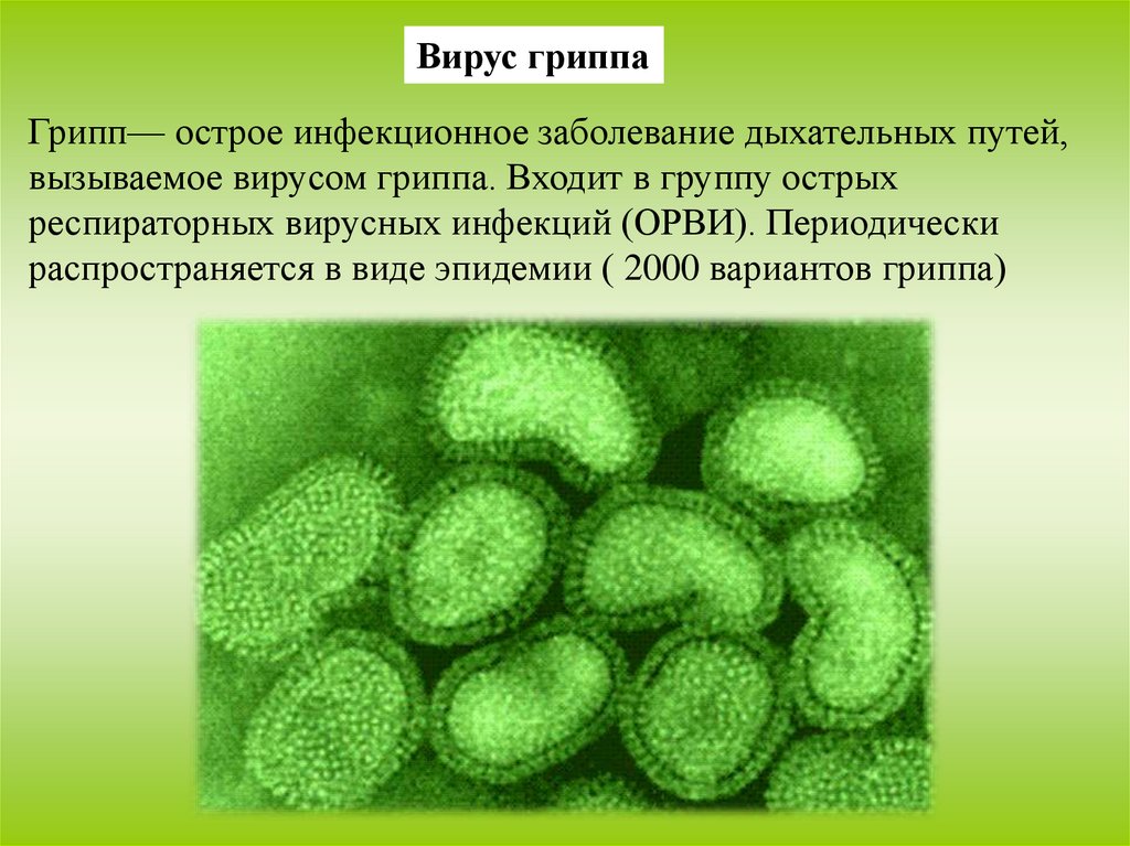 Вирус гриппаГрипп— острое инфекционное заболевание дыхательных путей,