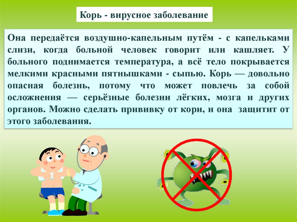 органов. Можно сделать прививку от кори, и она защитит от