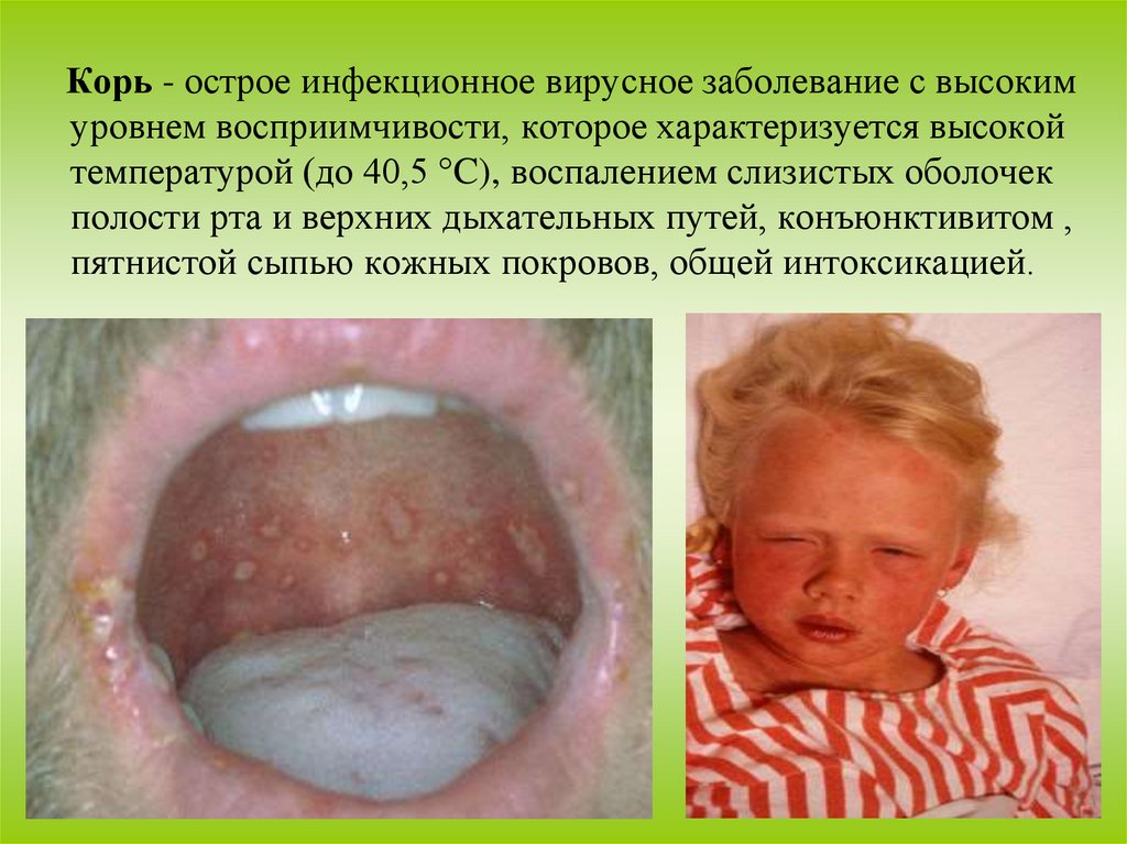 Корь - острое инфекционное вирусное заболевание с высокимуровнем восприимчивости, которое характеризуется высокой