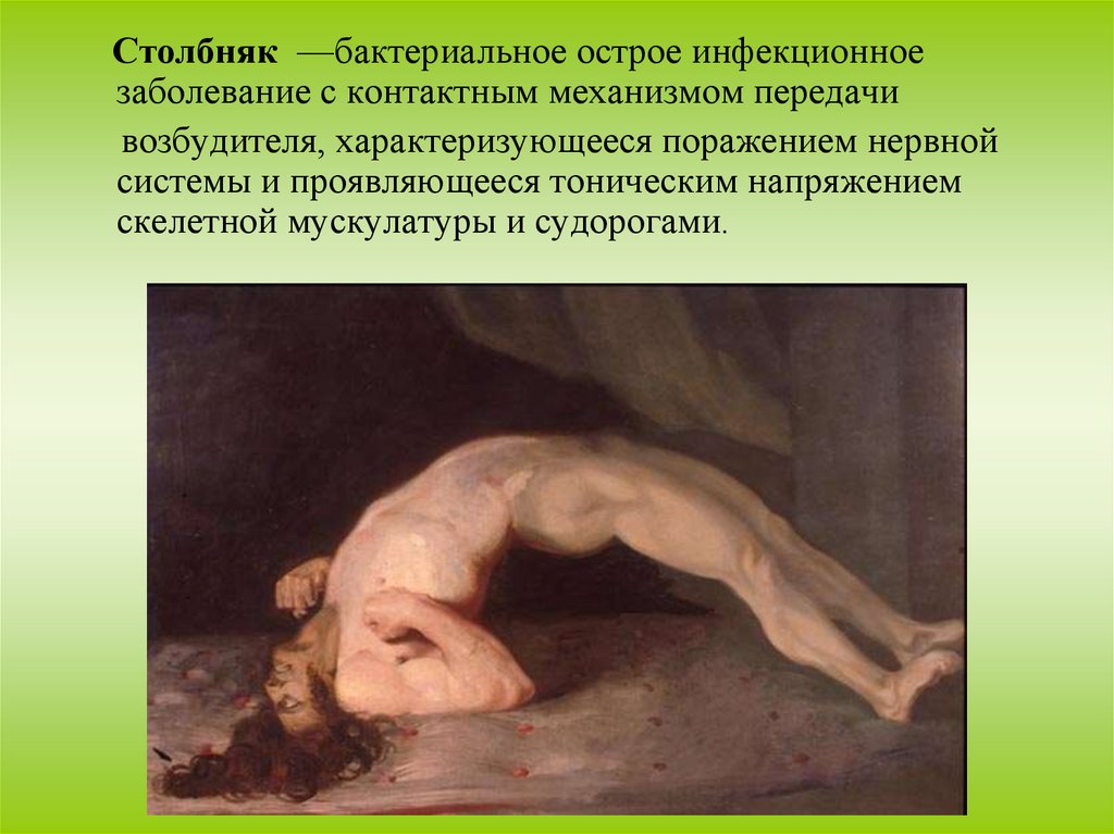 Столбняк —бактериальное острое инфекционноезаболевание с контактным механизмом передачи