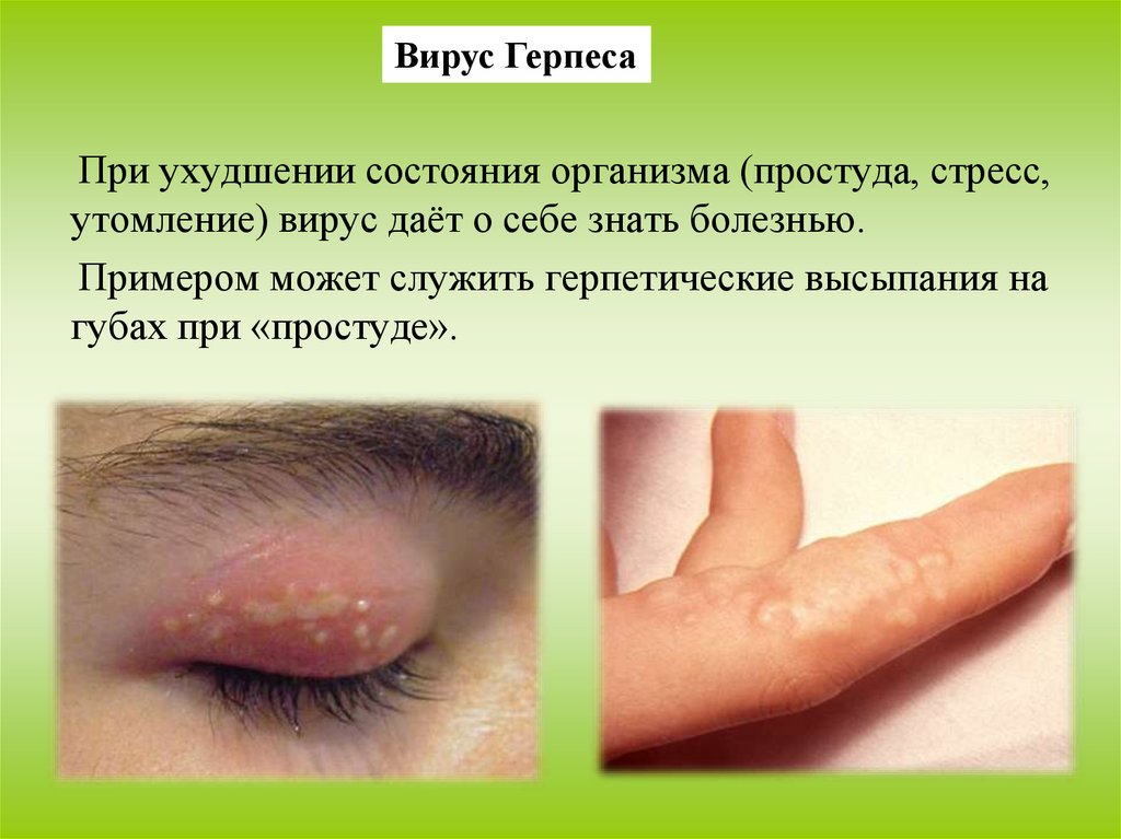 Вирус ГерпесаПри ухудшении состояния организма (простуда, стресс,