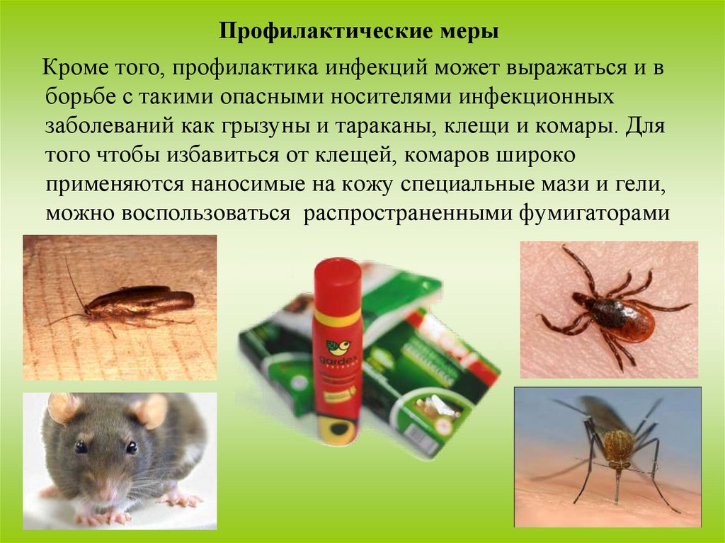 заболеваний как грызуны и тараканы, клещи и комары. Для