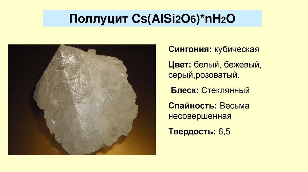 Поллуцит Cs(AlSi2O6)*nH2OСингония: кубическая