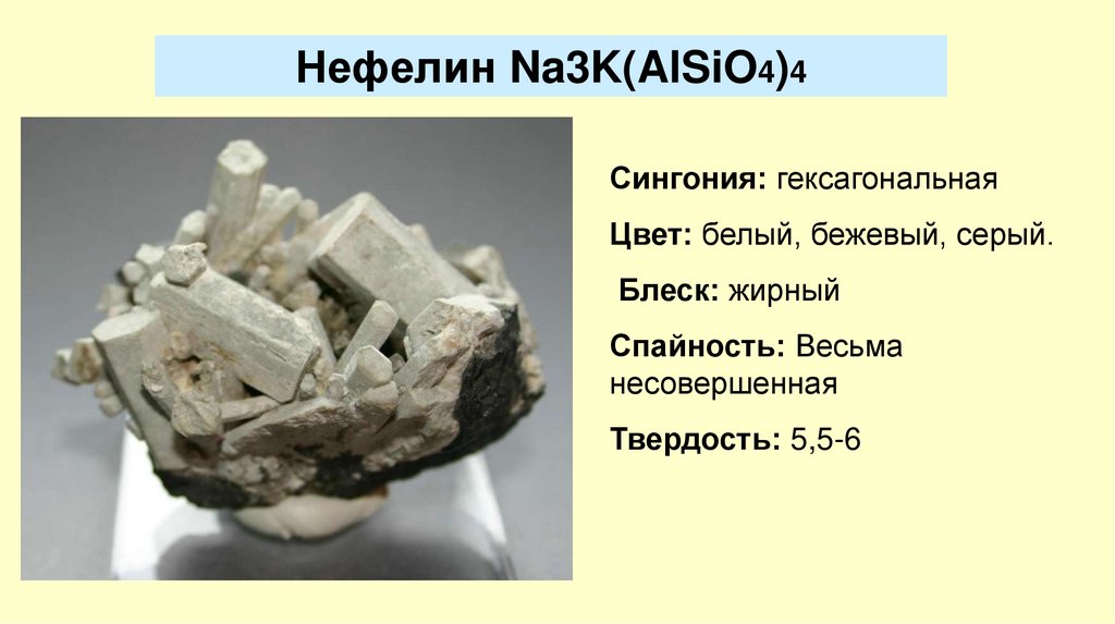 Нефелин Na3K(AlSiO4)4Сингония: гексагональная