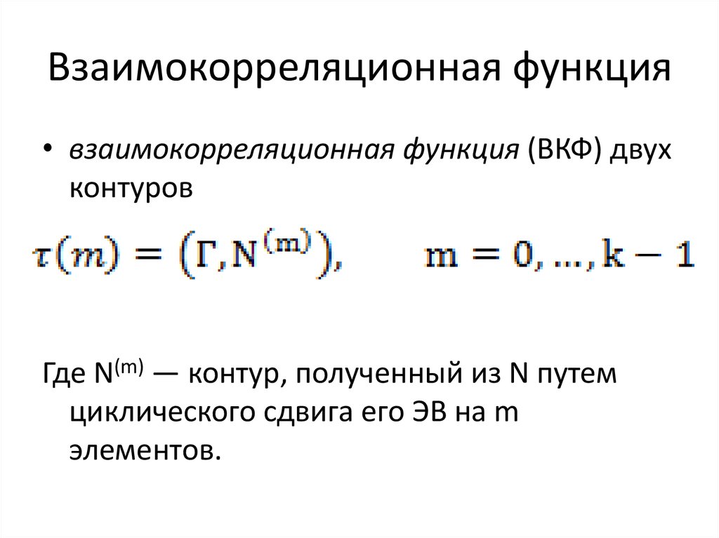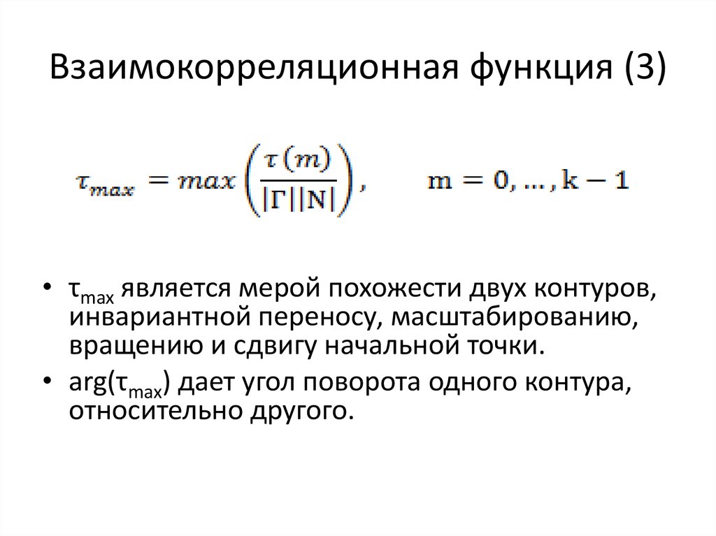 Взаимокорреляционная функция (3)• τmax является мерой похожести двух контуров,
