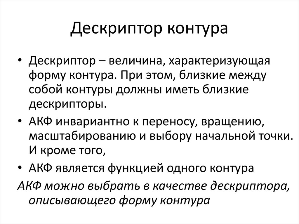 Дескриптор контура• Дескриптор – величина, характеризующая