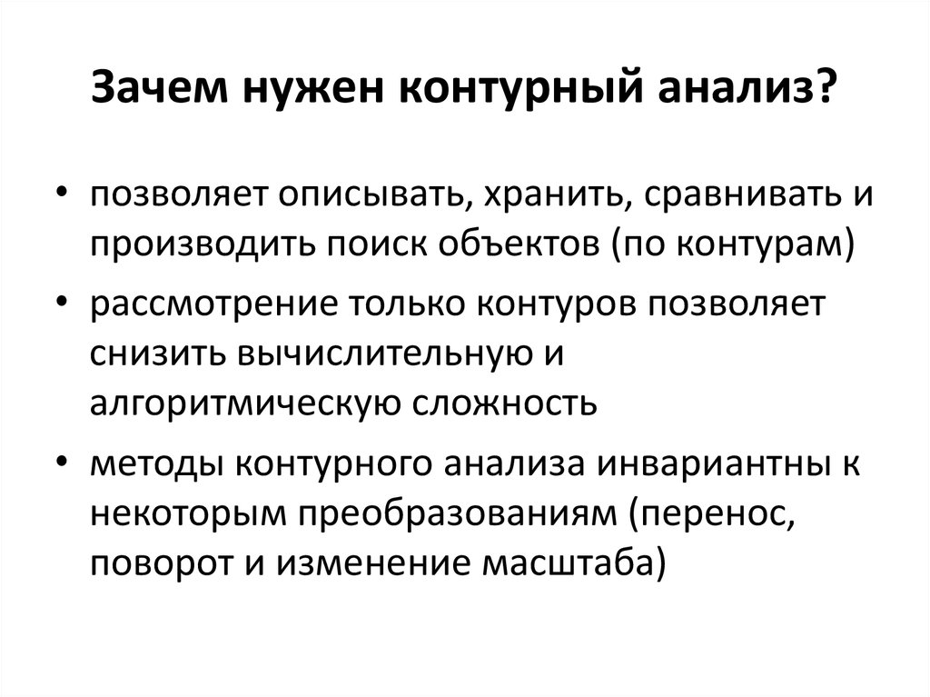 Зачем нужен контурный анализ?• позволяет описывать, хранить, сравнивать и