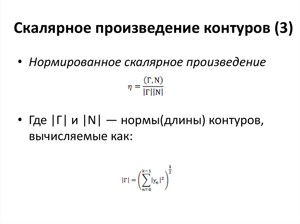 Скалярное произведение контуров (3)• Нормированное скалярное произведение