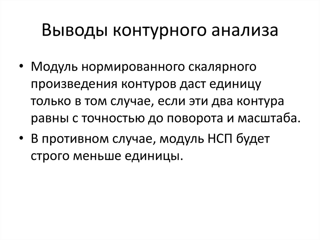 Выводы контурного анализа (2)• Модуль дает меру сходства контуров
