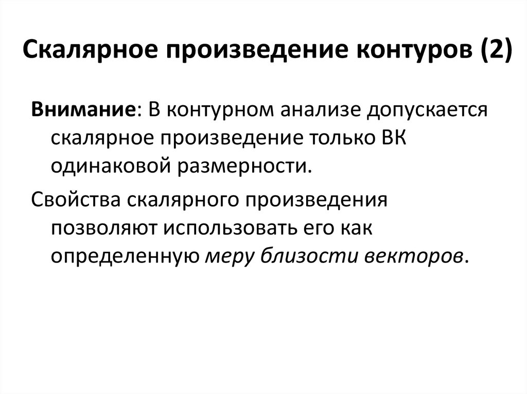 Скалярное произведение контуров (2)Внимание: В контурном анализе допускается