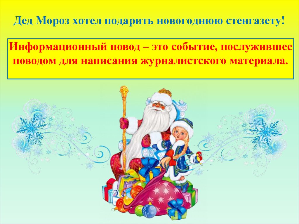 Дед Мороз хотел подарить новогоднюю стенгазету!Информационный повод – это событие, послужившее