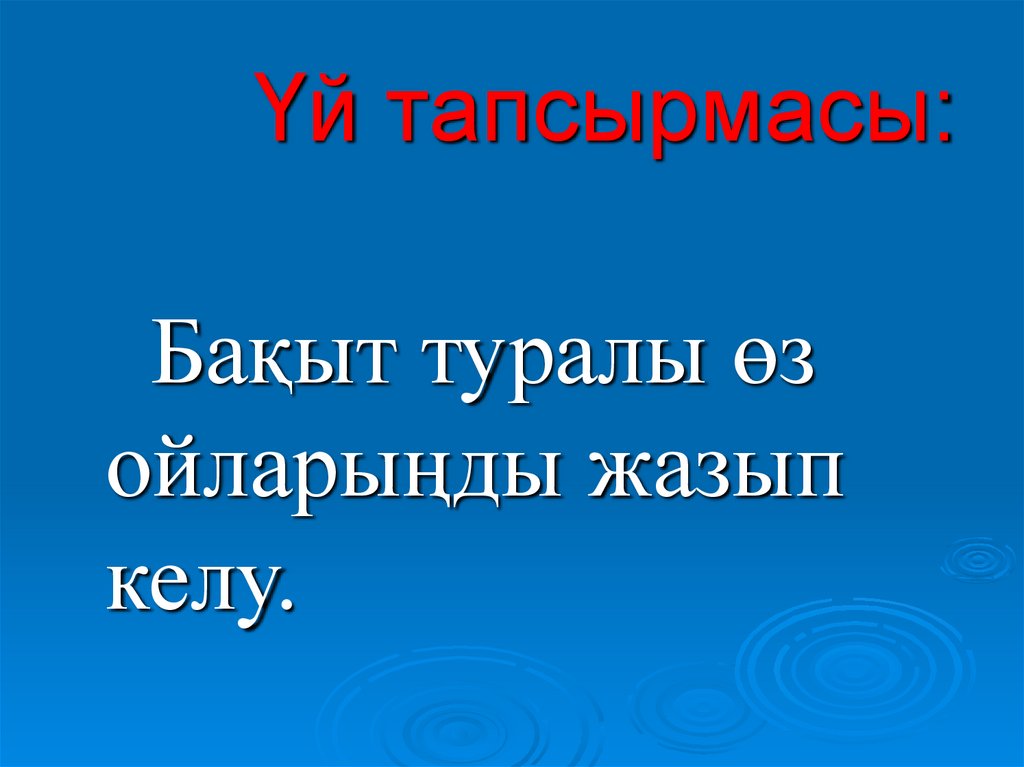 Үй тапсырмасы:Бақыт туралы өз
