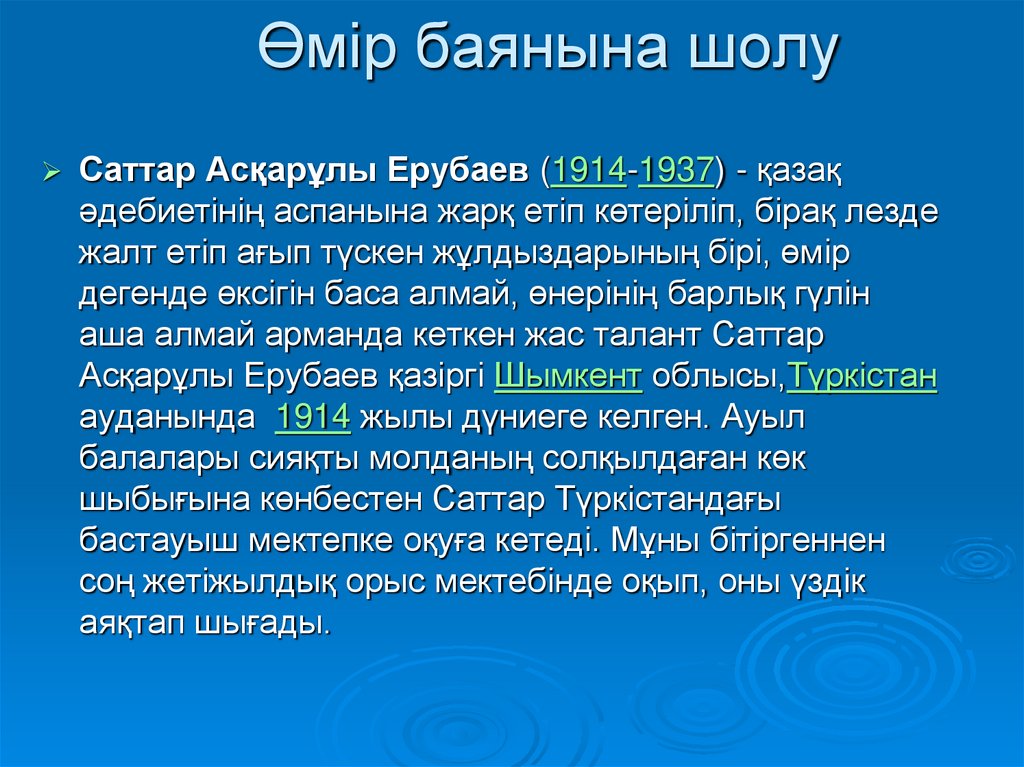 Өмір баянына шолуСаттар Асқарұлы Ерубаев (1914-1937) - қазақ