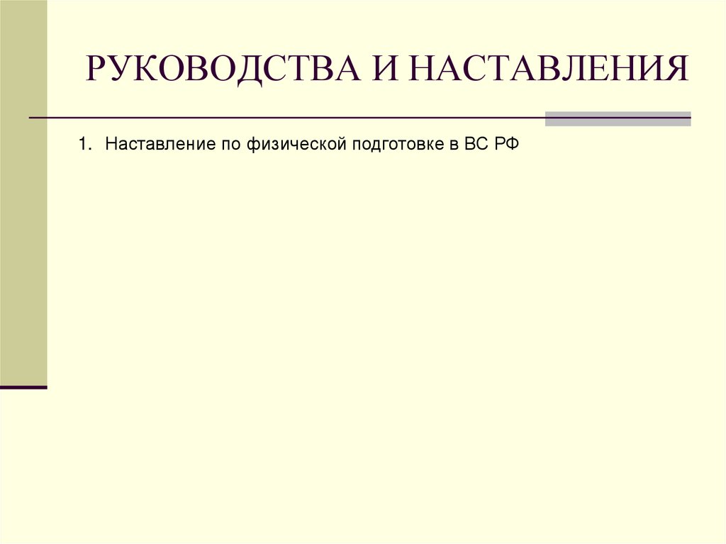 РУКОВОДСТВА И НАСТАВЛЕНИЯ1. Наставление по физической подготовке в ВС РФ
