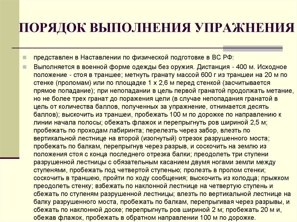 ПОРЯДОК ВЫПОЛНЕНИЯ УПРАЖНЕНИЯпредставлен в Наставлении по физической подготовке в ВС РФ: