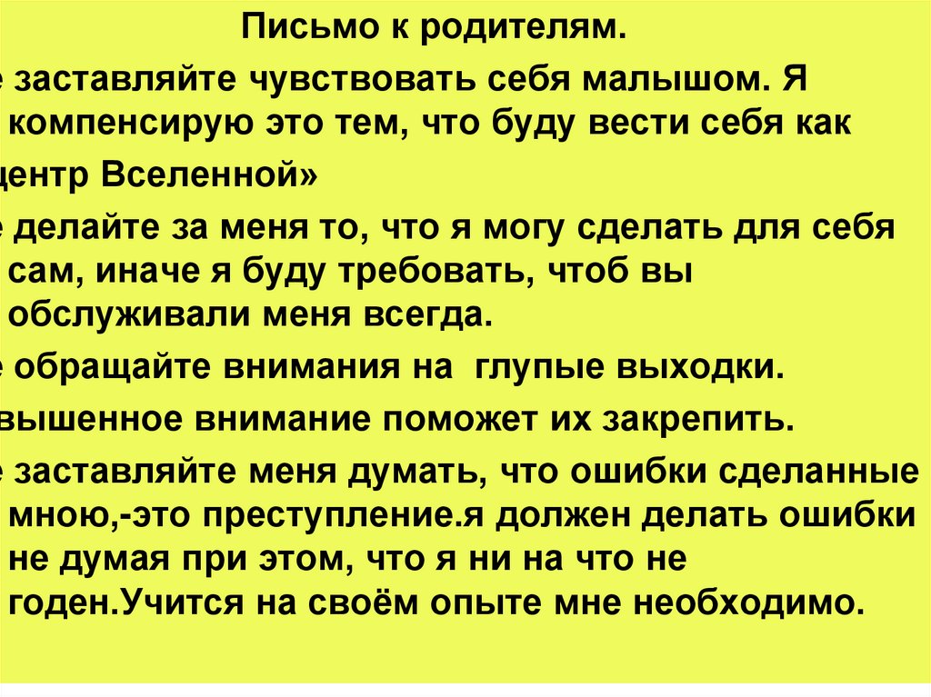 Письмо к родителям.е заставляйте чувствовать себя малышом. Я