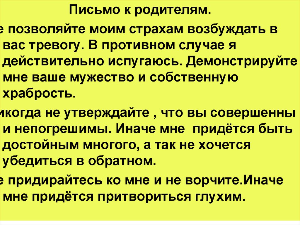 Письмо к родителям.е позволяйте моим страхам возбуждать в