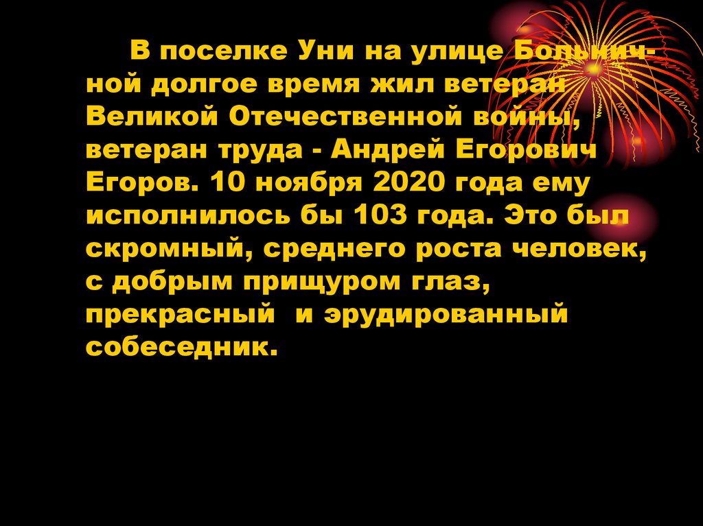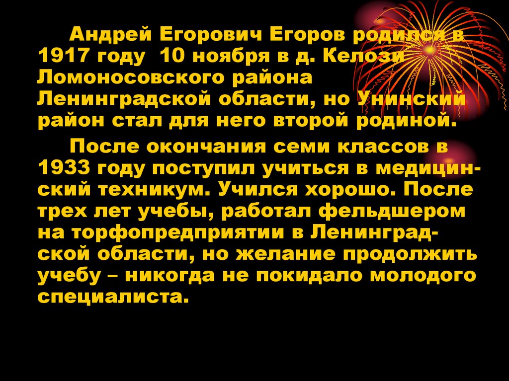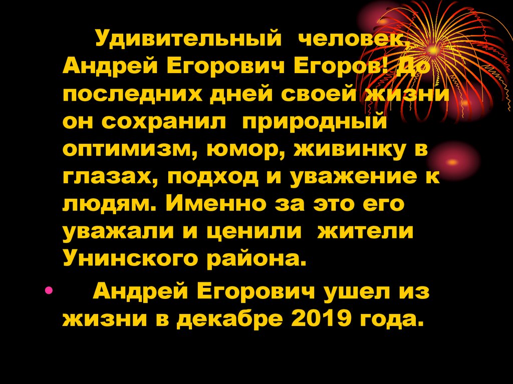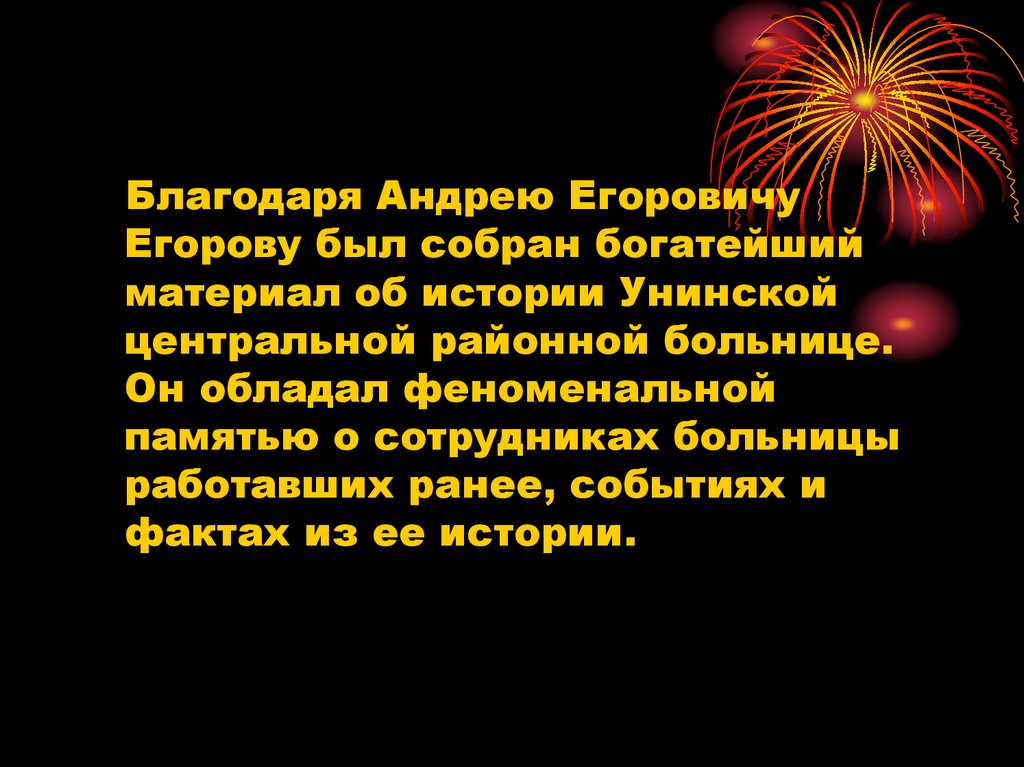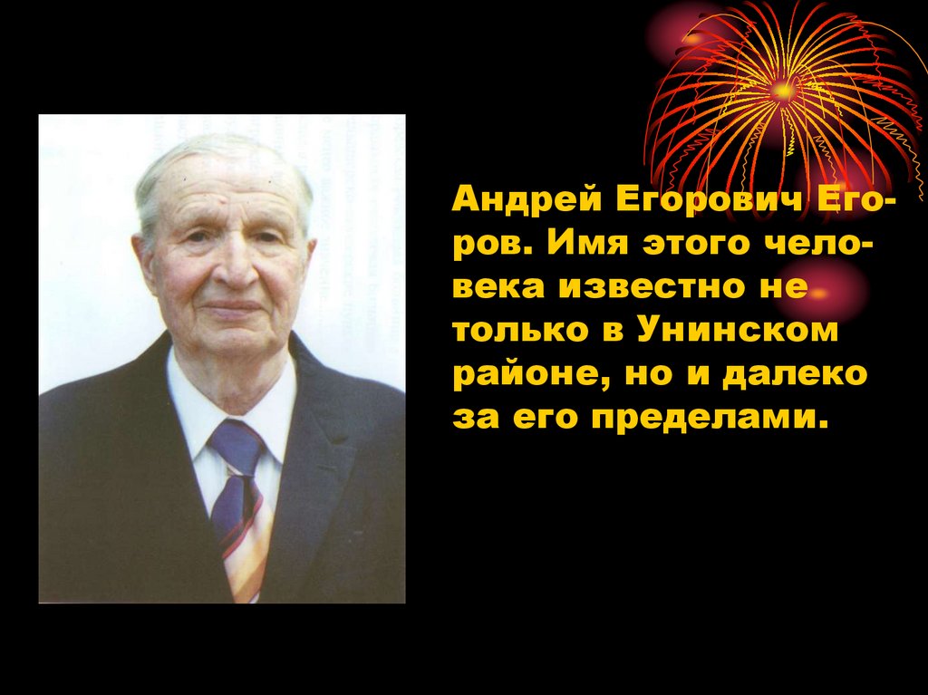 Андрей Егорович Егоров. Имя этого человека известно нетолько в Унинском