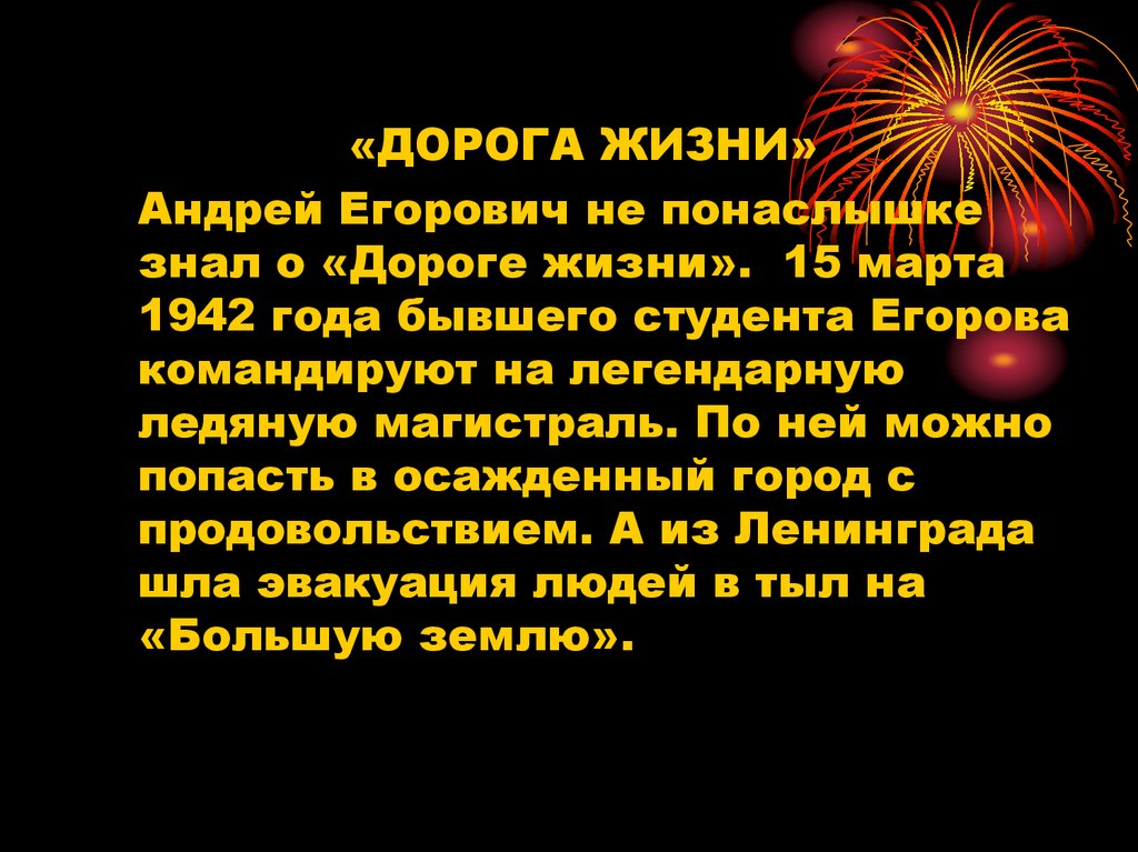 «ДОРОГА ЖИЗНИ»Андрей Егорович не понаслышке