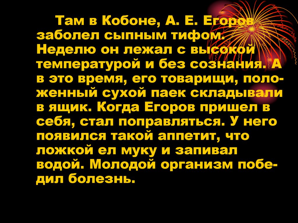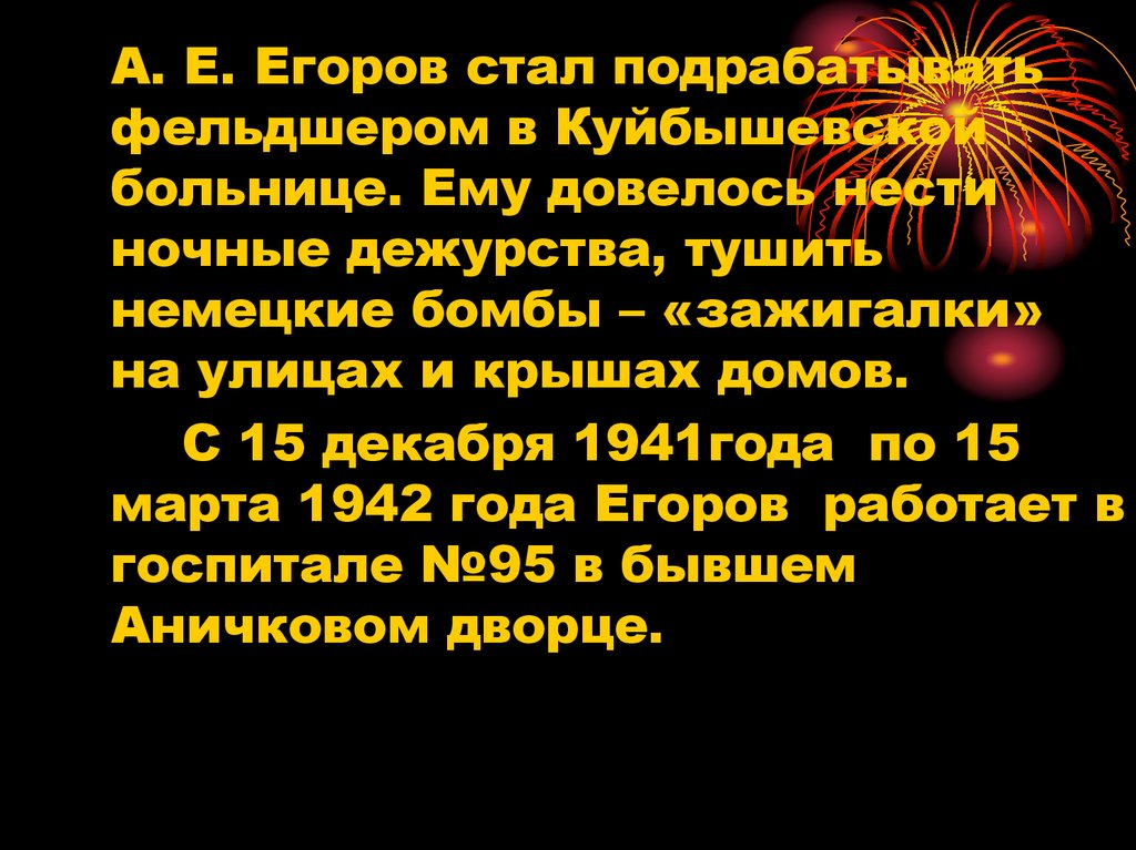 А. Е. Егоров стал подрабатыватьфельдшером в Куйбышевской