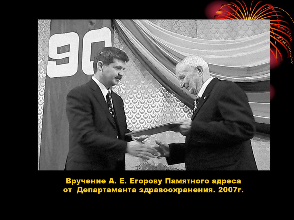 Вручение А. Е. Егорову Памятного адресаот Департамента здравоохранения. 2007г.