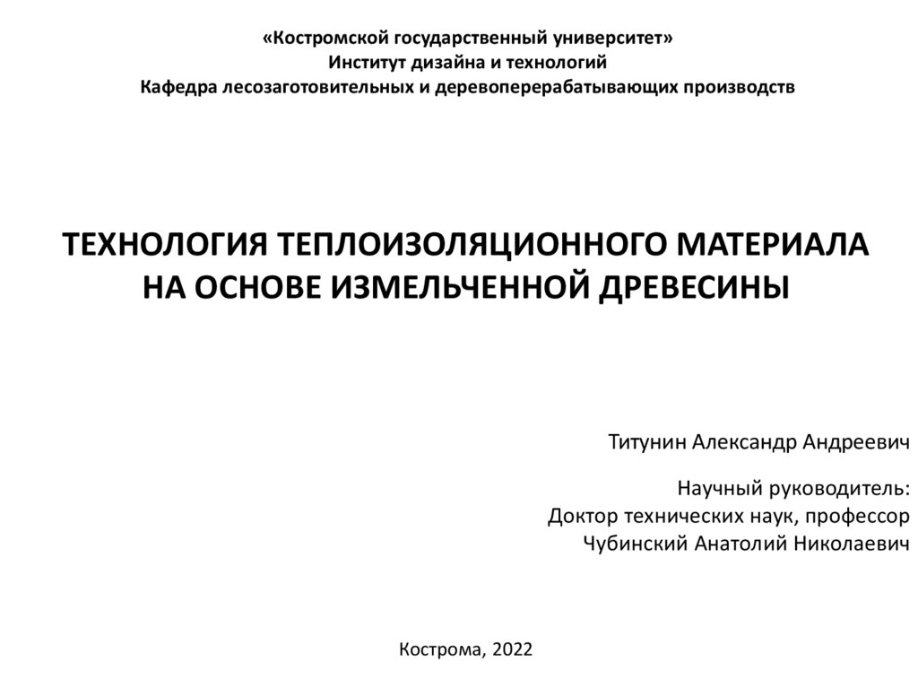 1. «Костромской государственный университет» Институт дизайна и технологий Кафедра лесозаготовительных и деревоперерабатывающих