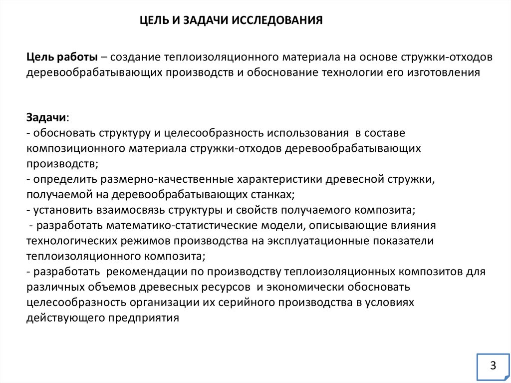 ЦЕЛЬ И ЗАДАЧИ ИССЛЕДОВАНИЯЦель работы – создание теплоизоляционного материала на основе стружки-отходов