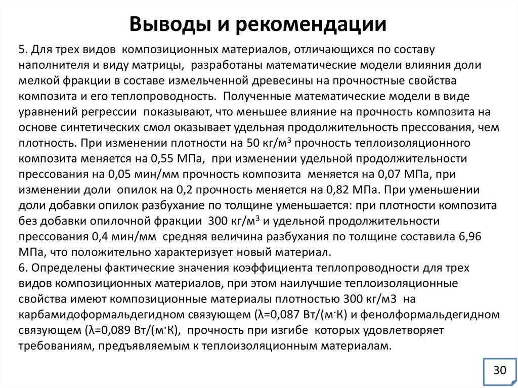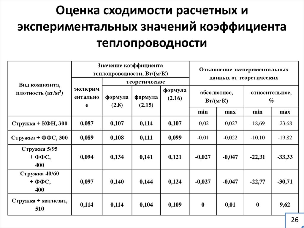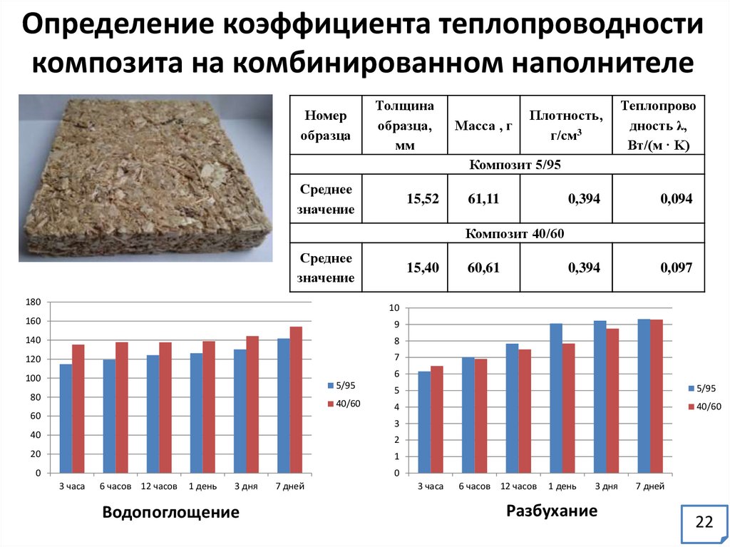 наполнителя, связующего и воздуха, м3; λк, λдр, λс, λн – коэффициент теплопроводности композита, древесного