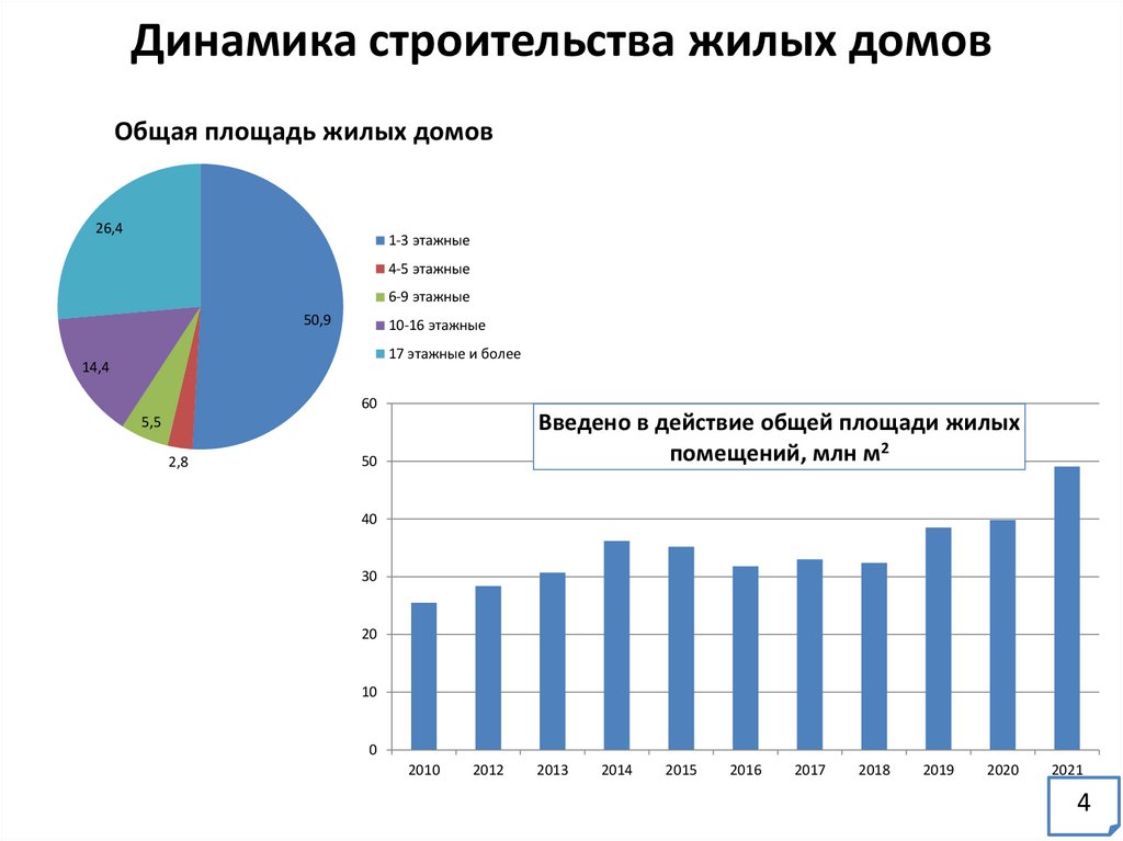 Динамика строительства жилых домовОбщая площадь жилых домов