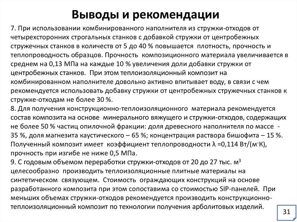 - разработать рекомендации по производству теплоизоляционных композитов для
