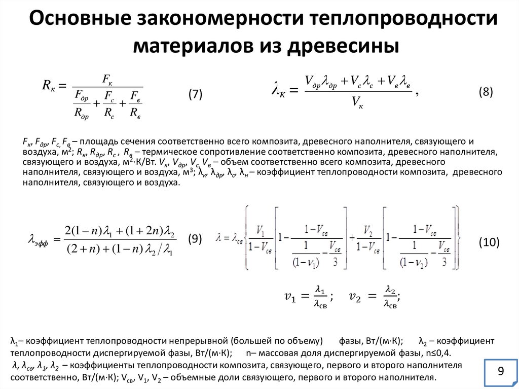 связующего и воздуха, м2·К/Вт. Vк, Vдр, Vс, Vв – объем соответственно всего композита, древесного