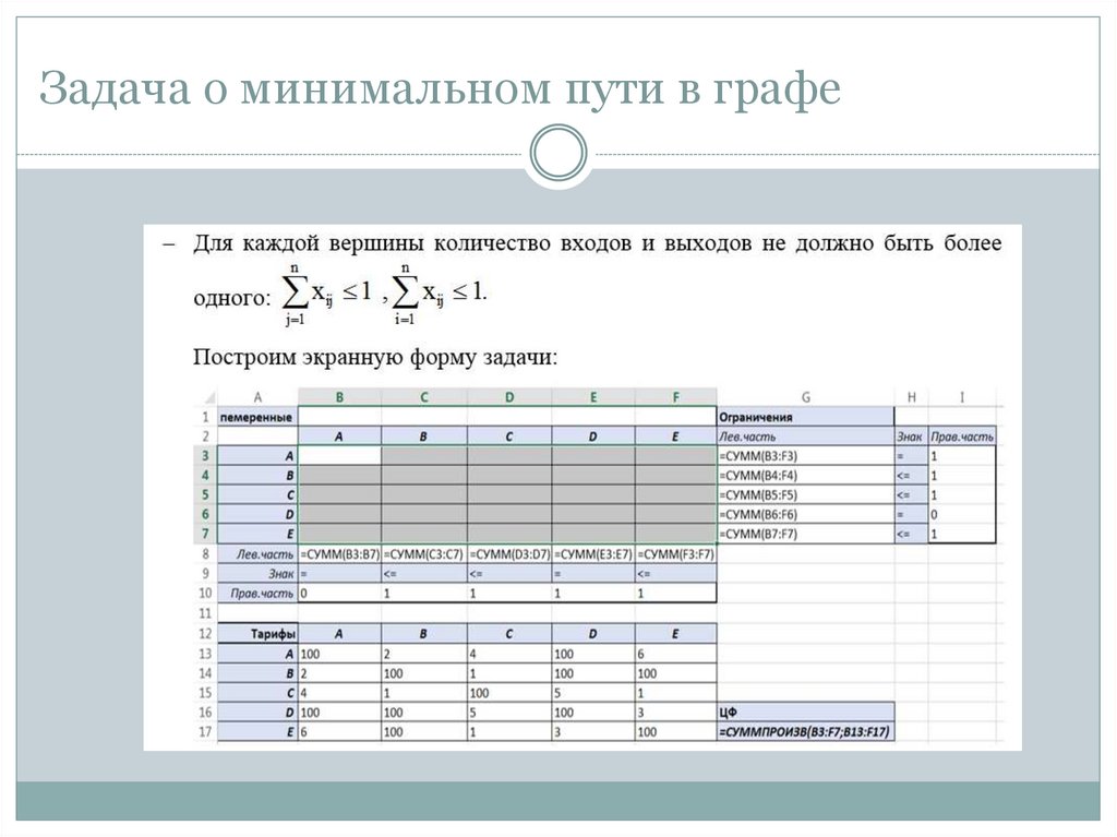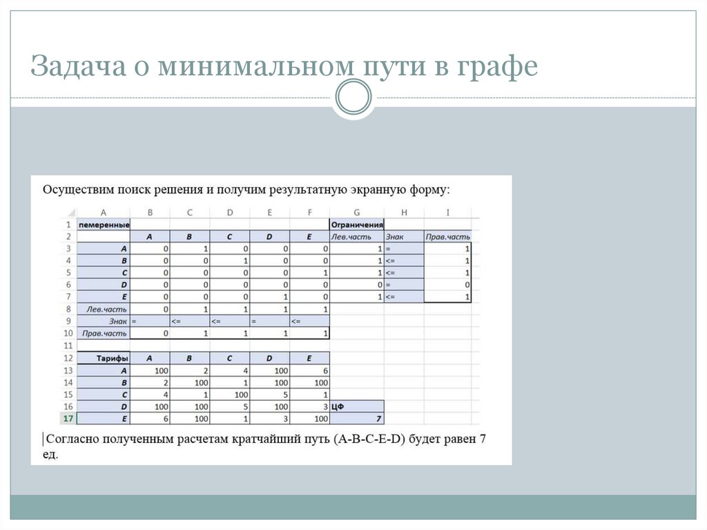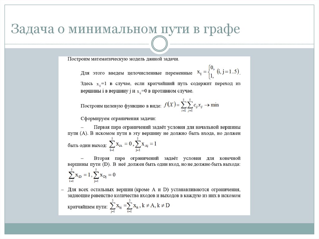 задача о минимальном пути в графе;