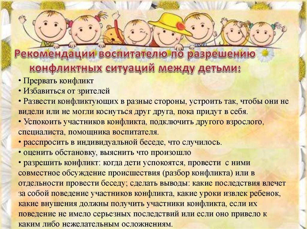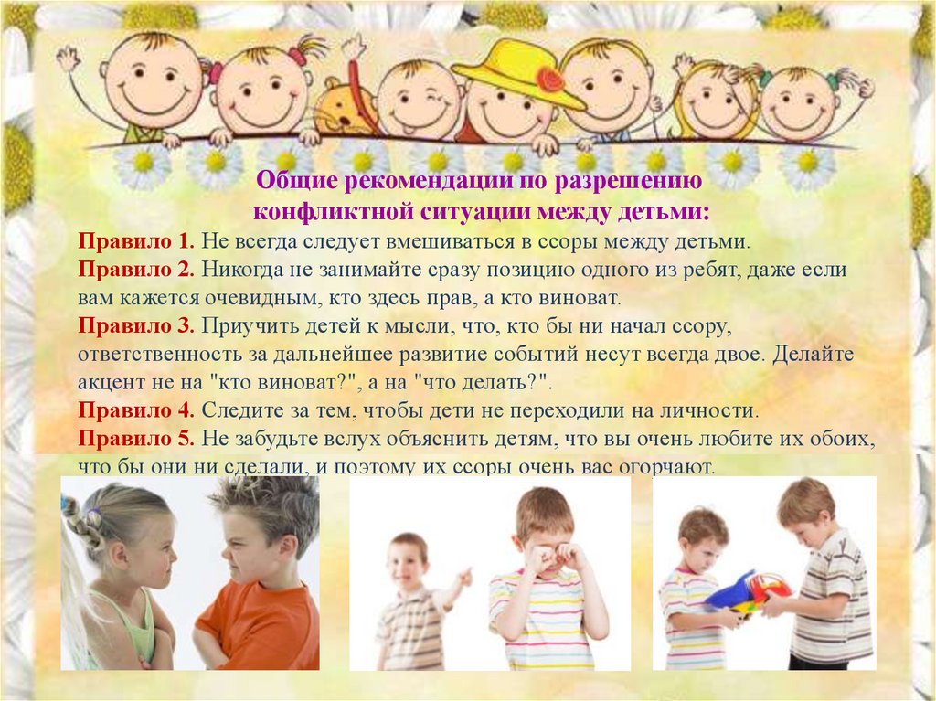 Общие рекомендации по разрешениюконфликтной ситуации между детьми: