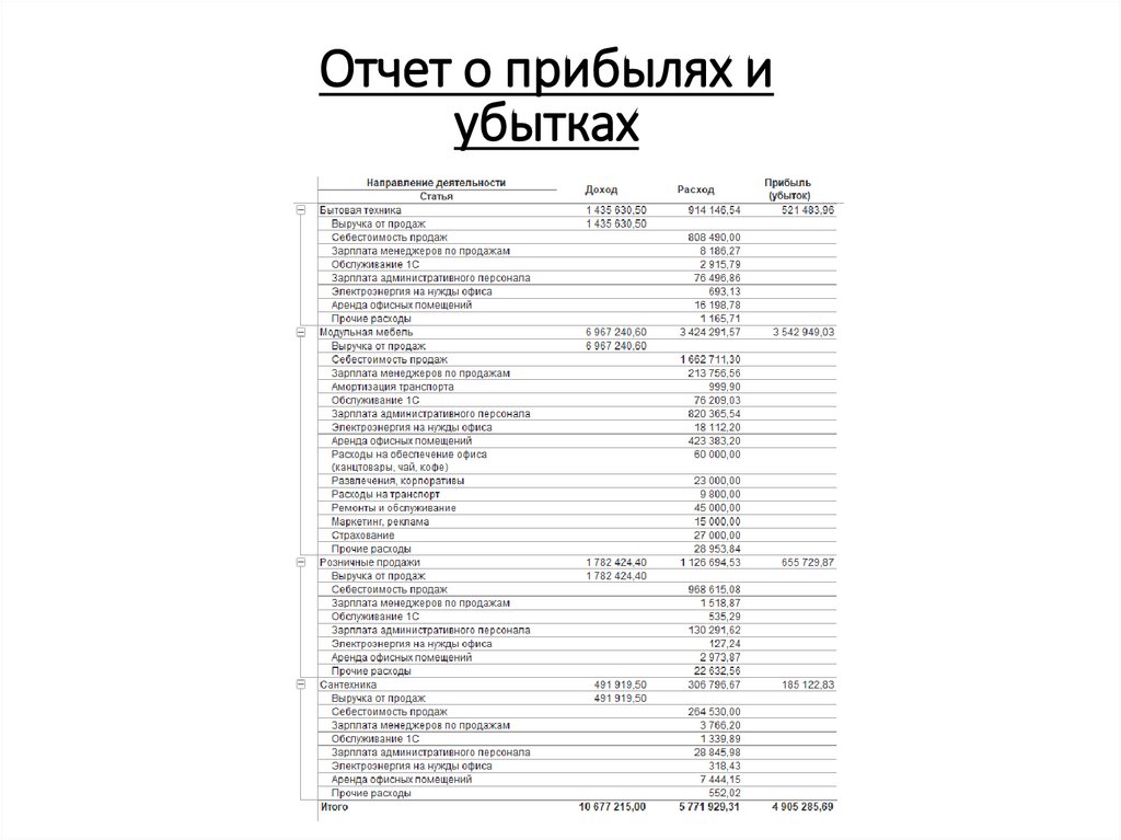 отчет о прибылях и