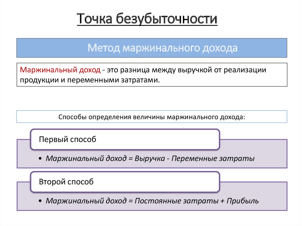 Точка безубыточностиМетод маржинального дохода