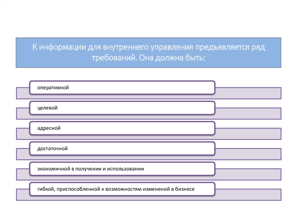 К информации для внутреннего управления предъявляется рядтребований. Она должна быть: