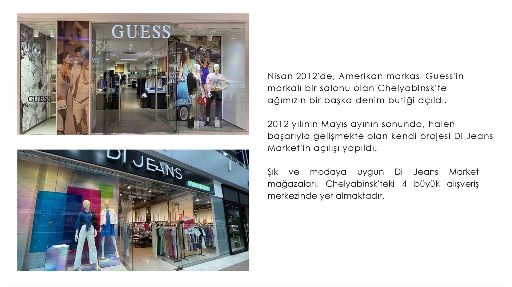 Nisan 2012'de, Amerikan markası Guess'inmarkalı bir salonu olan Chelyabinsk'te