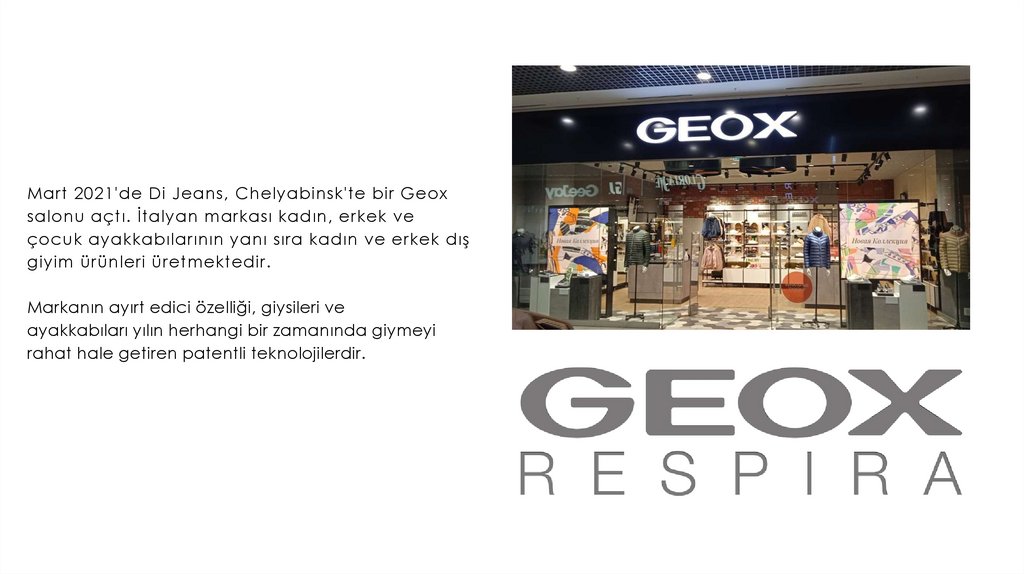 Mart 2021'de Di Jeans, Chelyabinsk'te bir Geoxsalonu açtı. İtalyan markası kadın, erkek ve