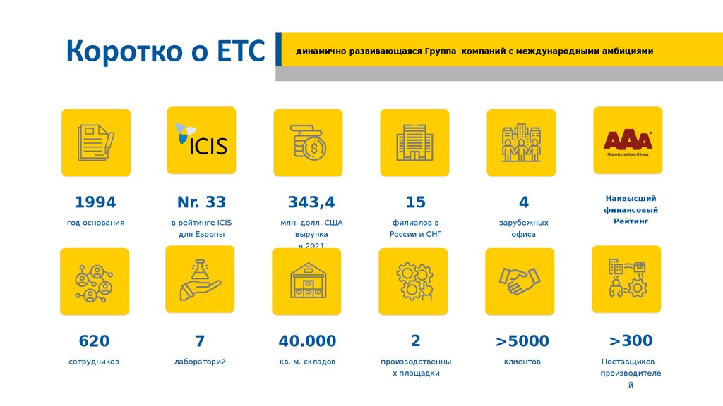 Коротко о ЕТСдинамично развивающаяся Группа компаний с международными амбициями