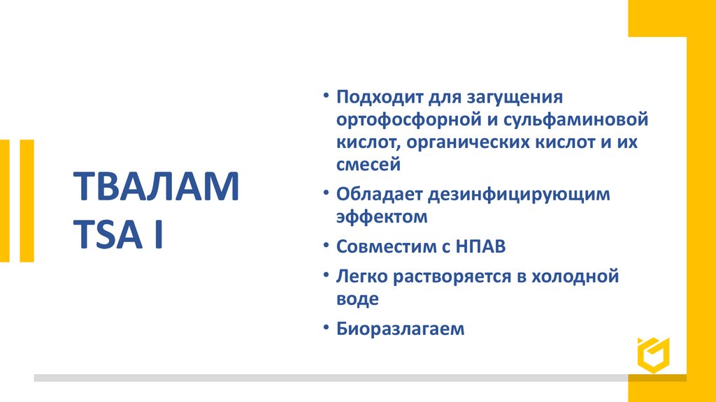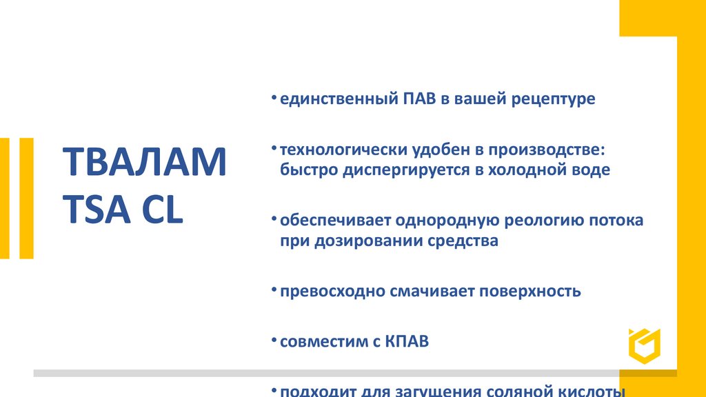 Загустители для бытовых кислотных чистящих средств:ТВАЛАМ TSA CL