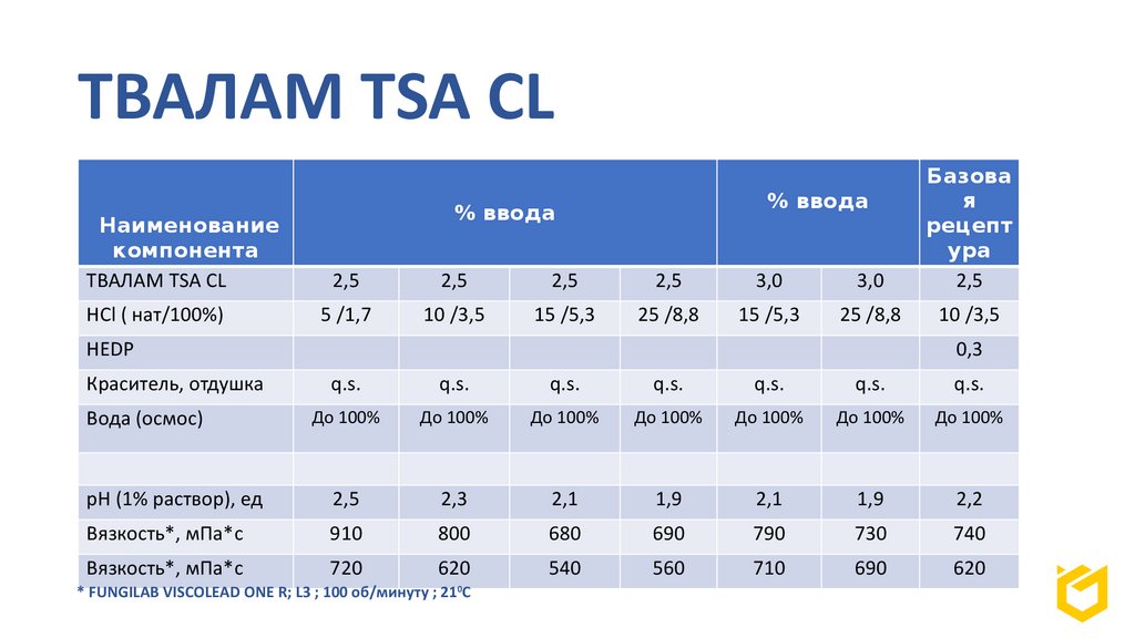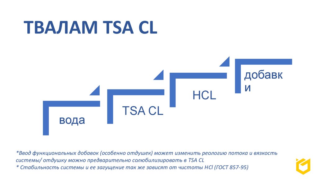 * Стабильность системы и ее загущение так же зависят от чистоты HCl (ГОСТ 857-95)
