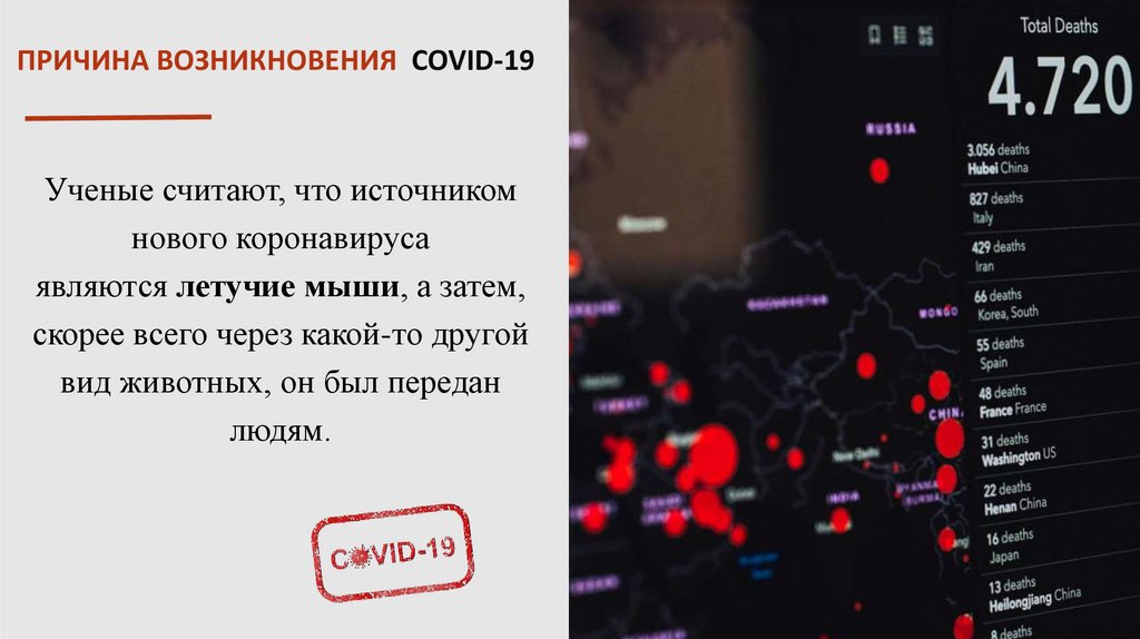 ПРИЧИНА ВОЗНИКНОВЕНИЯ COVID-19Ученые считают, что источником