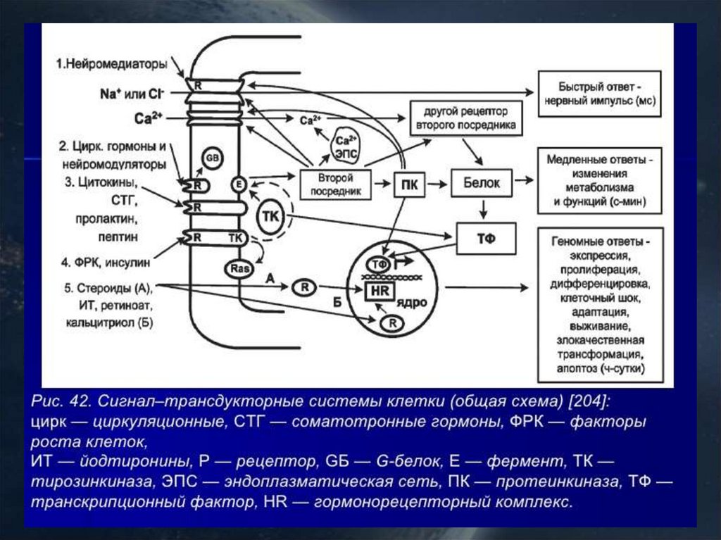 1-3 - мембранные рецепторы4 – внутриклеточные рецепторы