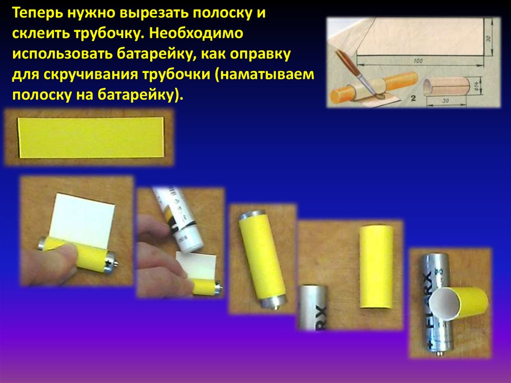 Теперь нужно вырезать полоску исклеить трубочку. Необходимо